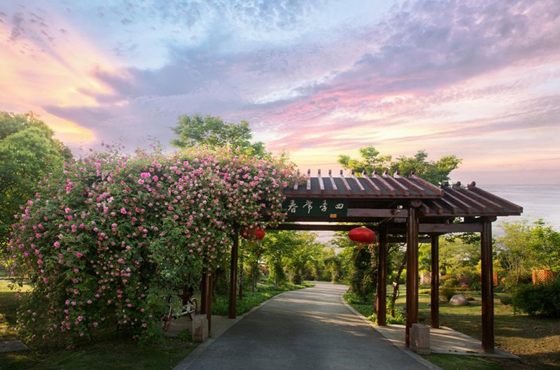 園區與周邊景觀利用效果顯著,以優質玫瑰品種研發培育為基礎,先后引進國內外優質玫瑰、薔薇、月季品種500余種,依托南青蕩清澈的水面及周圍原生態的自然景觀,搭配園區每個季節主題性的花卉綠植配置,開展各類文化體驗活動,包括休閑觀光、黨建活動、會議培訓、創意手作、婚紗攝影、戶外婚禮、研學旅行、水上運動、團建拓展、燒烤露營、騎行徒步、采摘垂釣等,打造出具有地域特色的玫瑰主題現代農業創意體驗園區。