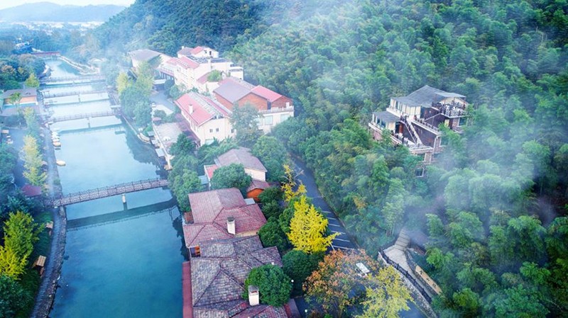 度假村按五星標準建造,外觀采用中國美麗鄉村的建筑風格,擁有各式客房202間,擁有30余畝的蔬菜基地、竹林放養雞鴨林場和兩處魚塘。度假區內另有湯泉、健身房、戶外拓展、游泳池,篝火燒烤、水上娛樂、登山、親子游等各種活動,并建造了一條貫穿度假村全境1800米長的美林綠道,可以滿足顧客鍛煉身體以及療休養的需要。