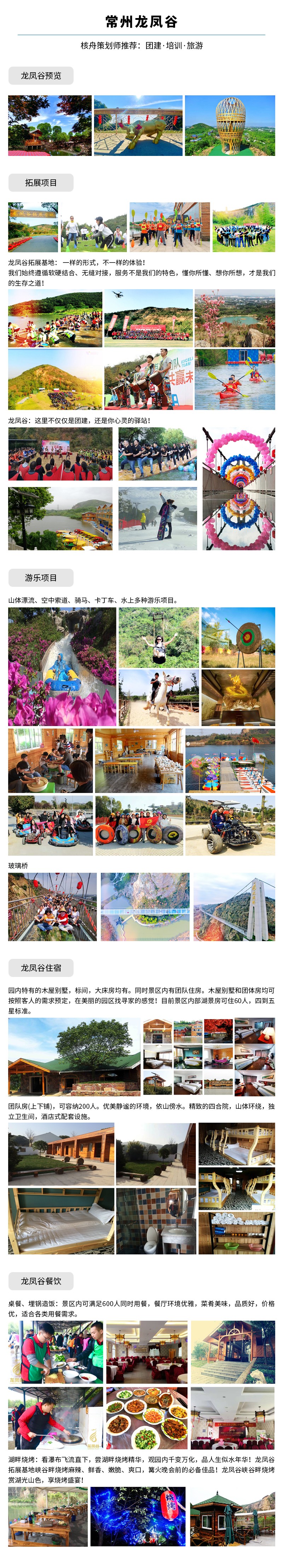 常州龍鳳谷拓展基地是景區(qū)發(fā)展核心板塊,擁有上百種團(tuán)建項(xiàng)目,獨(dú)立草坪15塊,最大草坪可容納2000人活動(dòng),是企業(yè)拓展訓(xùn)練活動(dòng)、團(tuán)隊(duì)建設(shè)、公司旅游、慶典、會(huì)議、年終晚會(huì)、企業(yè)培訓(xùn)、游樂、自駕游、度假、親子游、夏令營、冬令營、春游、秋游及公司各種主題活動(dòng)的最好的去處! 努力打造華東線上最好的拓展基地!同時(shí)龍鳳谷風(fēng)景區(qū)內(nèi)搭配用餐、住宿、會(huì)議室等配套設(shè)施,滿足各類需求。