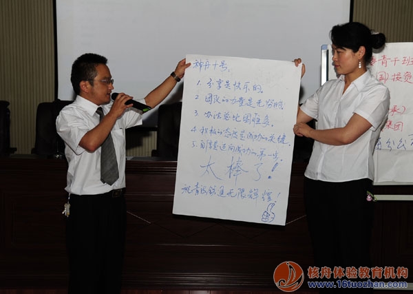 體驗式培訓(xùn)結(jié)束時,大家以小組為單位,進行總結(jié)、概括……