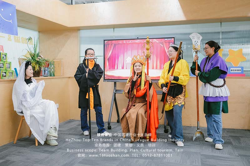 本次工坊摒棄傳統團建的刻板模式,以“戲劇聯結職場”為核心思路,讓非演員出身的參與者快速融入創意實踐。活動中,各團隊圍繞經典IP進行劇情重構,將職場協作理念巧妙融入演繹:《西游記》里的取經團隊化身“天庭創業組”,以協作精神攻克難題,最終用科技思維助力天庭發展;《紅樓夢》則濃縮為3分鐘短劇《詩社聯句》,王熙鳳用“teamwork”“團建”等現代詞匯制造反差,林黛玉在眾人包容下放下顧慮,以“同心協力譜華章”點出團隊核心;《甄嬛傳》跳出宮廷框架,以“江南同行”的劇情讓角色在結伴中凝聚信任。這些創新演繹既保留經典韻味,又精準傳遞了職場協作的核心價值,讓參與者在歡笑中加深聯結。