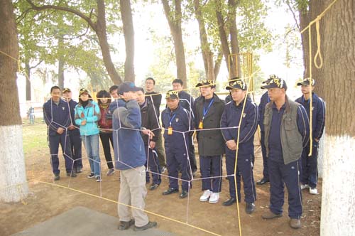 在拓展培訓中,學員對項目的體驗程度將直接會影響學員的認知和感受;所以教練對項目的布置和對項目的深刻理解是非常重要的;這些未來的拓展培訓師們都在認真聽王老師的詳細指導,并且現場操作,馬上消化吸收;