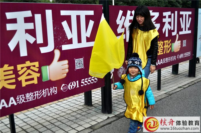 旁邊的廣告牌都忍不住給這個小家伙點贊!