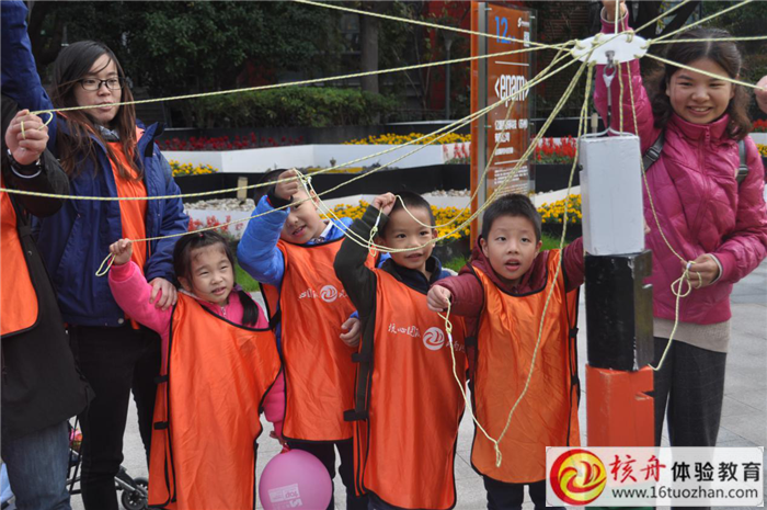 大家一起挑戰“步步高”!每人牽扯一至兩根繩子,在大家的通力協作下利用鐵環勾起木塊壘起高樓。孩子和家長們問的不亦樂乎,盡情沉醉其中,最終挑戰成功!