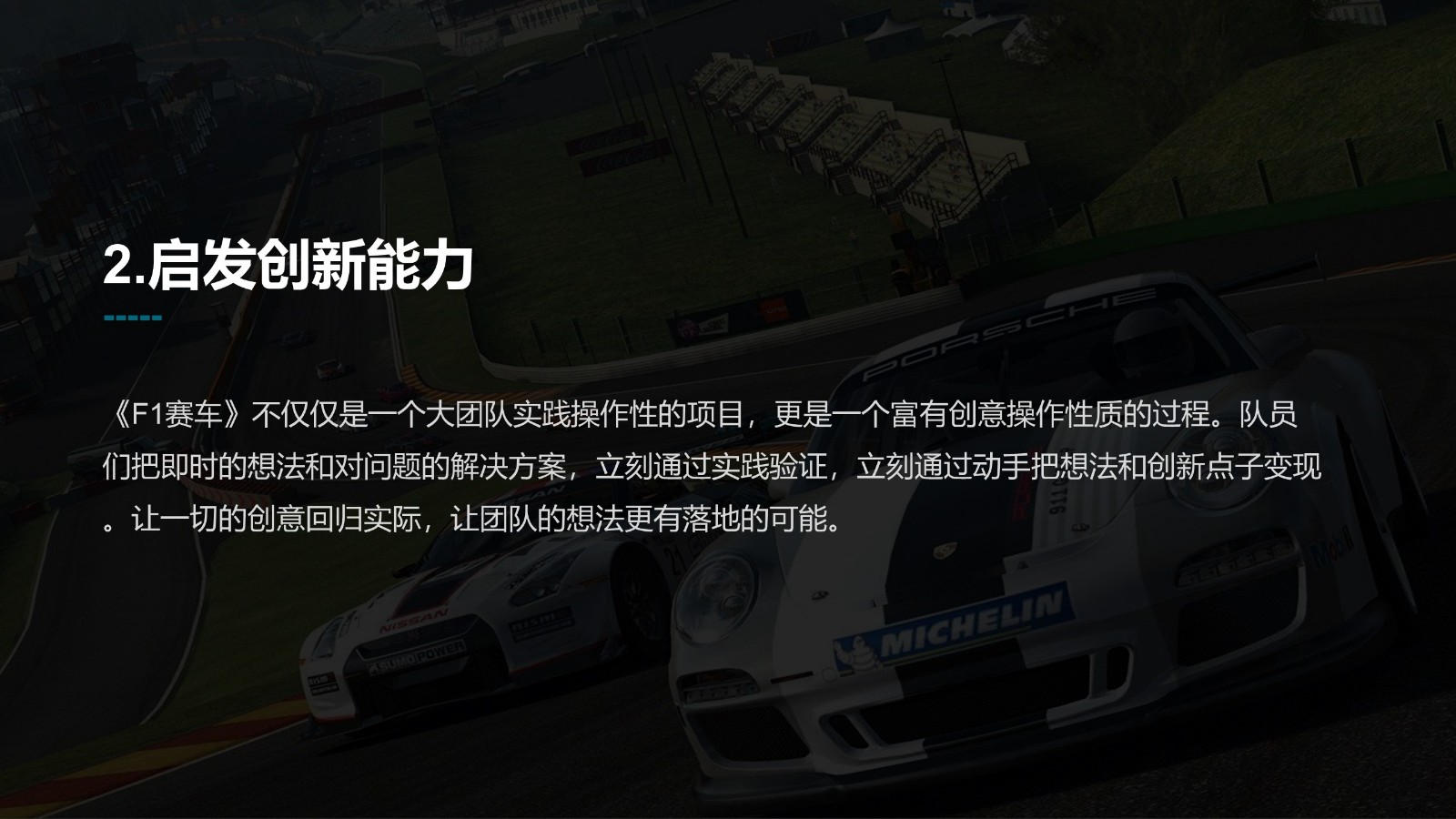 歷時(shí)3年百場(chǎng)賽車團(tuán)建經(jīng)驗(yàn)萃取。速度與激情 創(chuàng)新與執(zhí)行 協(xié)同與效率 共創(chuàng)與凝聚;