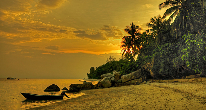 海島上古木參天,樹大林密,植被豐厚,被偌大的海灘包圍,沒有房屋,沒有燈光,沒有食物,沒有野獸。 有的只是岸礁上大量的扇貝、水中的魚兒~