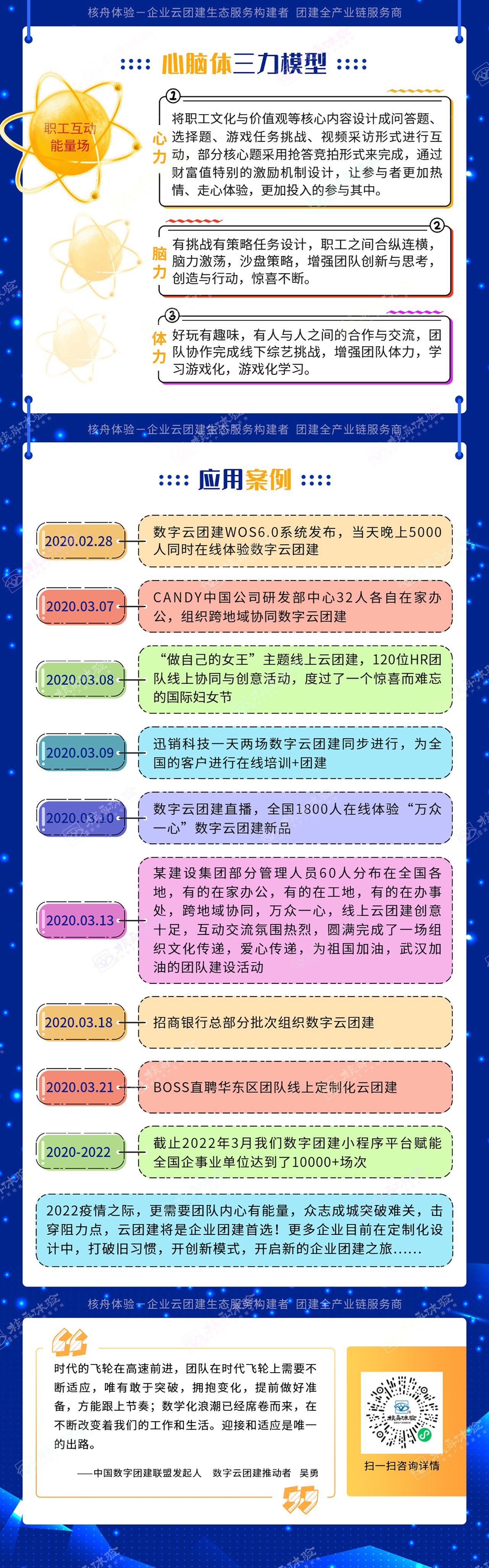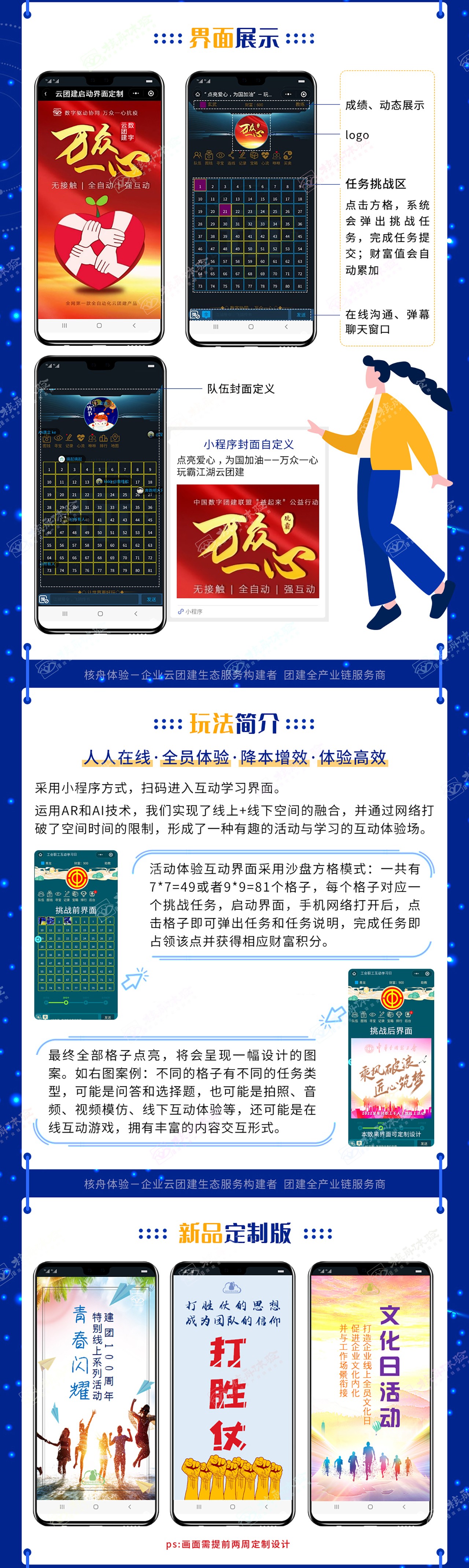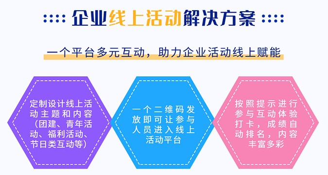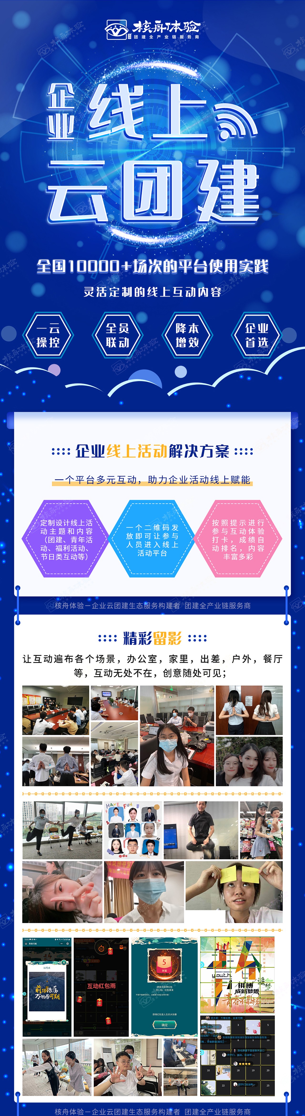 全國10000+場次的平臺使用實踐;靈活定制的線上互動內容;一云操控,全員聯動,降本增效,企業云團建首選