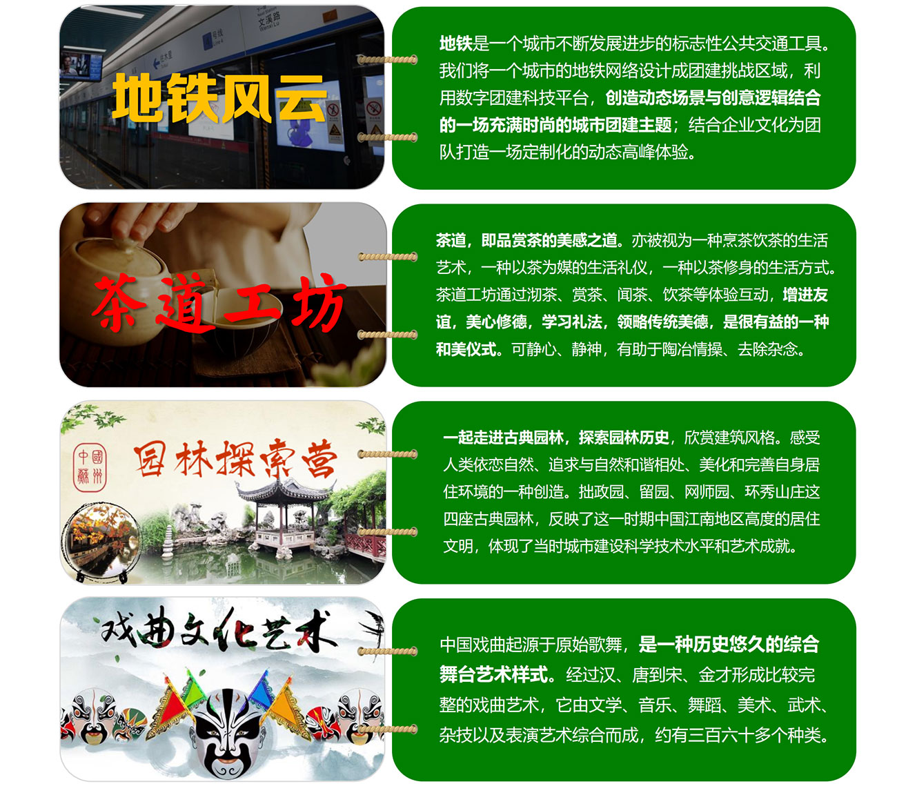 舌尖上的團建,抓住員工的胃,抓住團隊的心;以美食文化為背景,融合趣味性的探索任務,讓成員彼此融合。